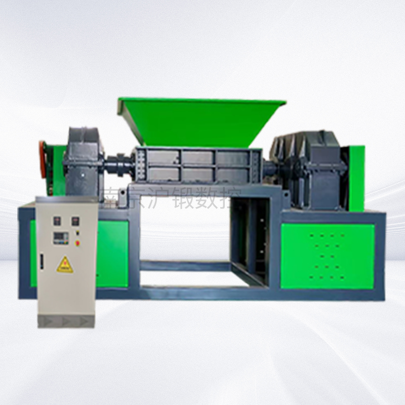 配备独立智能控制柜的废铁专用双轴撕碎机,采用绿灰配色的重型机身搭配双旋转耐磨合金刀轴,依托大功率驱动系统的强劲扭矩,可高效剪切撕裂铁皮、废钢构件、钢筋头这类废铁物料,兼具智能操控、运行稳定耐用的特点,主要用于废铁资源回收的预处理环节,能将大块废铁破碎为便于运输与熔炼的小块料,提升废铁回收的处理效率。