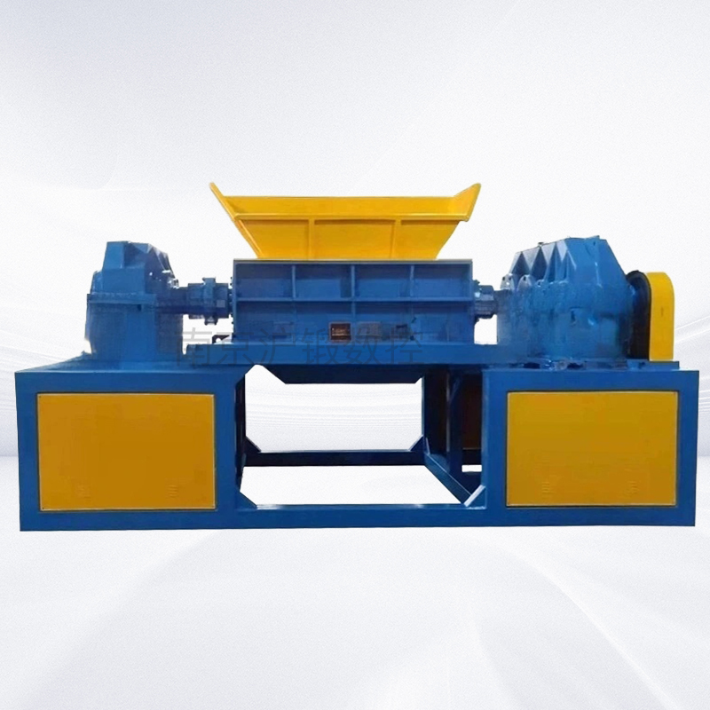 专用于废铁回收的大型双轴撕碎机,以蓝黄配色的重型机身搭配双旋转耐磨合金刀轴,依托大功率双电机的强劲扭矩,可高效撕碎铁皮、钢筋头、废钢构件等各类废铁物料,兼具防卡机的智能运行设计与高耐用性结构特点,主要用于废铁资源回收的预处理环节,能将大块废铁破碎为便于后续运输、熔炼的小块料。